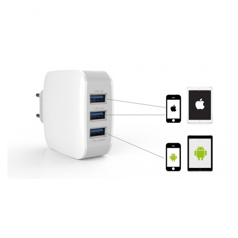 Triple cargador de red 3.1A Alta carga con ID Automatica