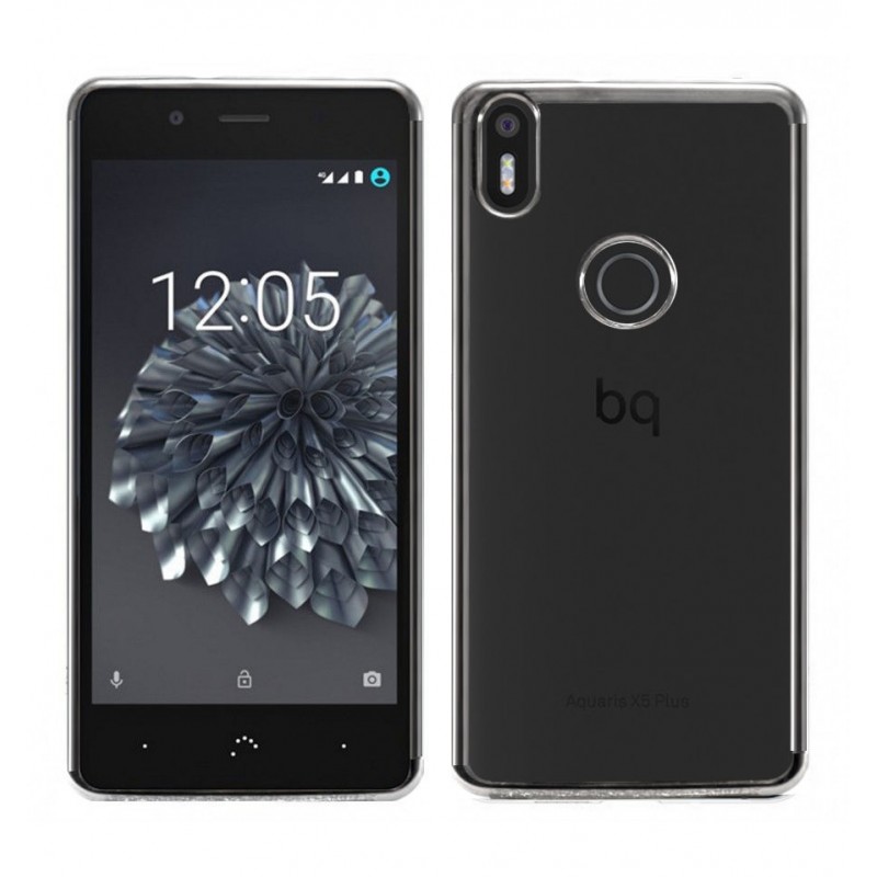 Funda BQ Aquaris X5 Plus Gel Transparente con bordes Plateado, con acople perfecto. Perfecta protección gracias a su Doble capa, amortigua mucho en caso de caidas, con diseño extra fino.