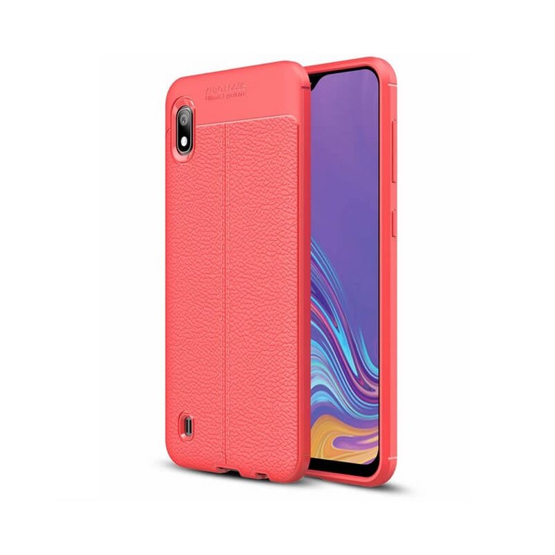 Funda Samsung Galaxy A10 Tpu Cuero 3D Roja con acople perfecto. Perfecta protección con diseño extra fino.