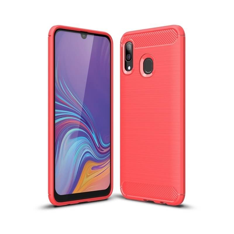 Funda Samsung Galaxy A20 Tpu 3D Cepillada Roja con acople perfecto. Perfecta protección con diseño extra fino.
