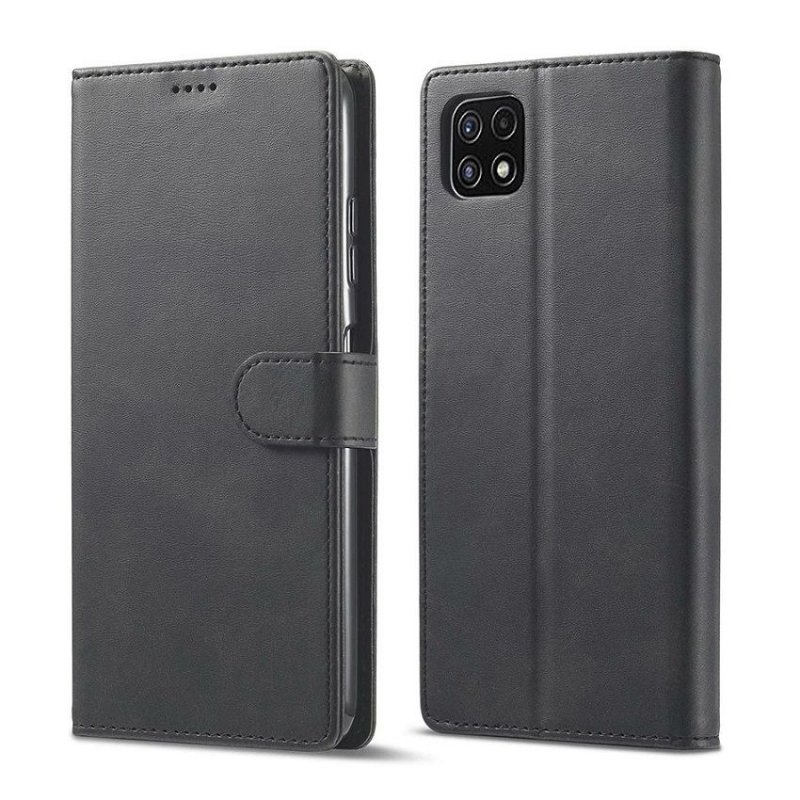 Funda Cuero Samsung Galaxy A22 5G Negra estilo libro cartera soporte. Con ranuras para tajetas o dni.