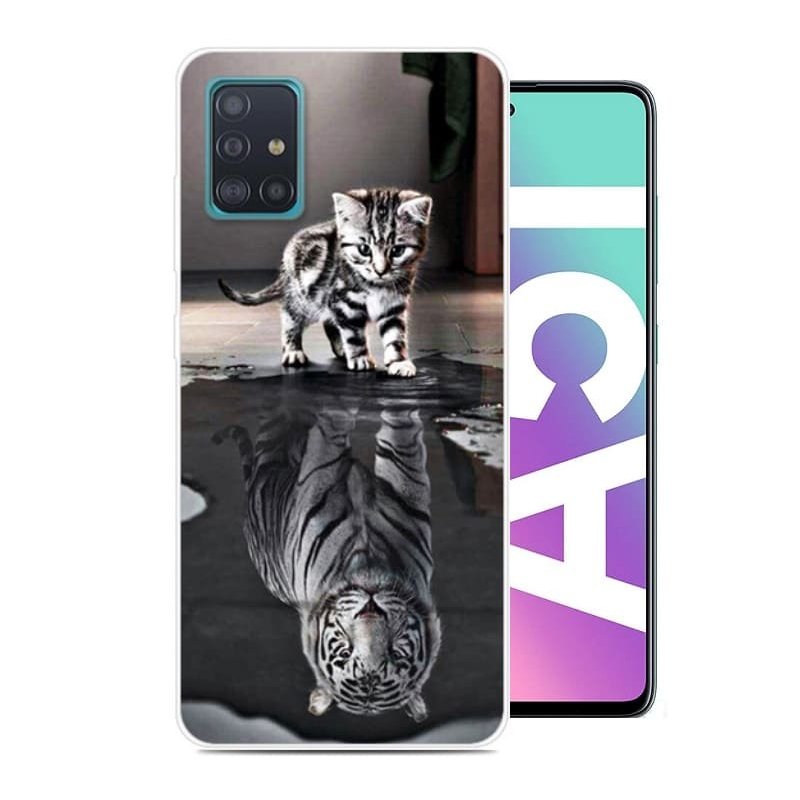 Funda Samsung Galaxy A51 TPU Dibujo Gato y Tigre Indestructible de alta calidad.