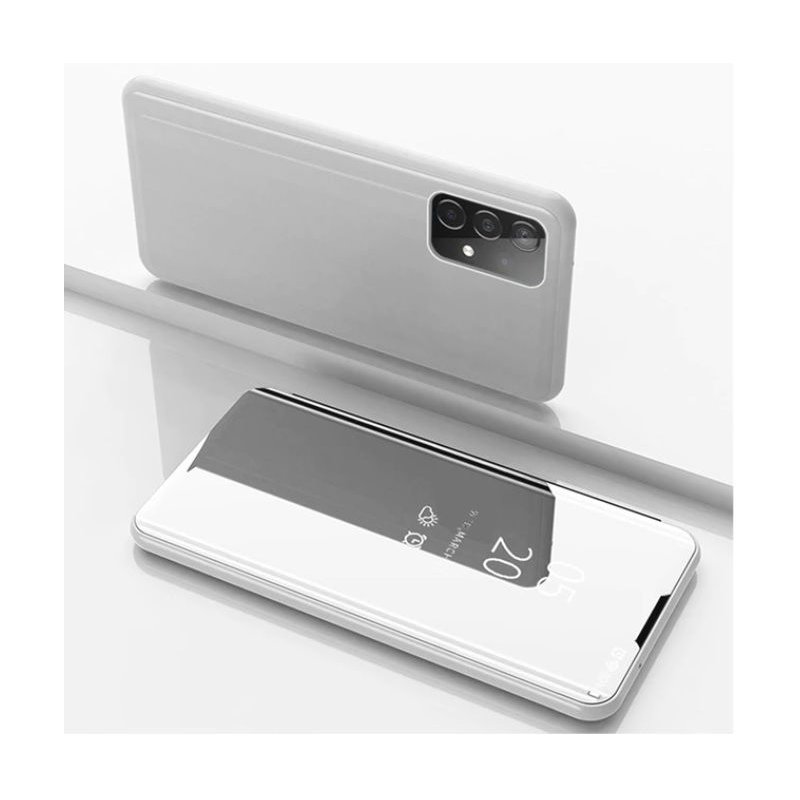 Funda inteligente tipo libreta cartera para tu Samsung Galaxy A53 5G rigida de color Gris Plata con efecto espejo translucido. Este smart cover esta muy de moda y no dejara nadie indiferente.