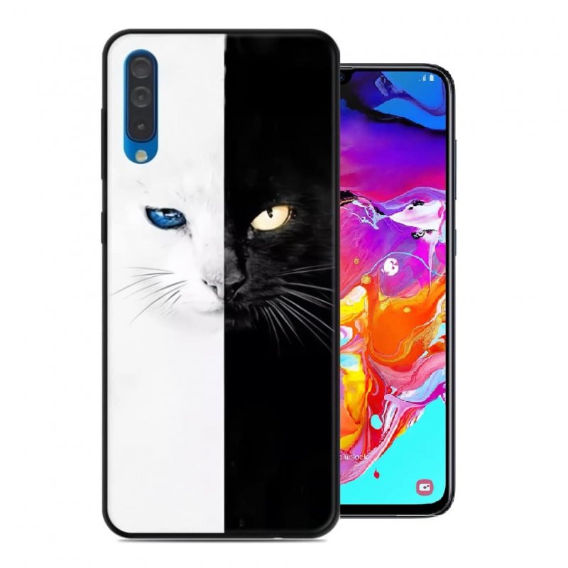 Funda Samsung Galaxy A70 Gel Dibujo Gato Blanco y Negro