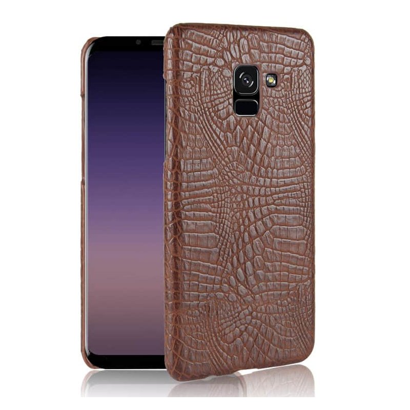 Carcasa Samsung Galaxy A8 2018 Cuero Estilo Croco Marron
