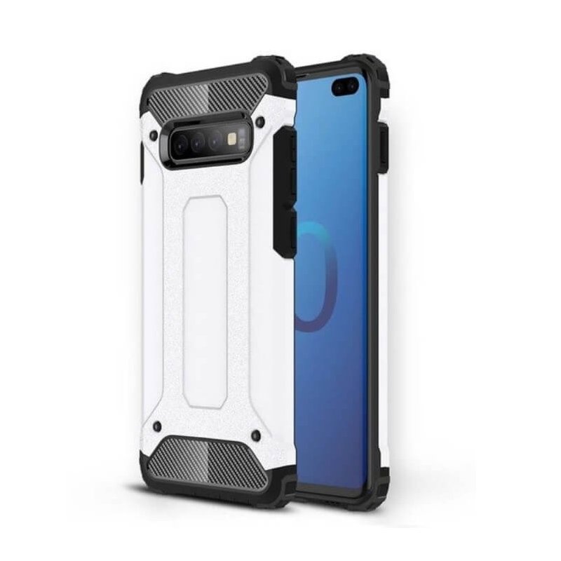 Funda Samsung Galaxy S10 Plus Shock Resistante Blanca, con acople perfecto. Perfecta protección gracias a su Doble capa (silicona + plastico duro), amortigua mucho en caso de caidas.
