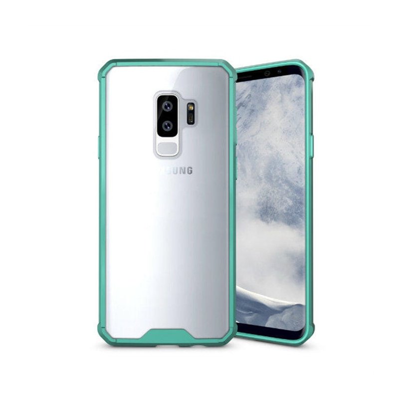 Funda Samsung Galaxy S9 Hybrid Transparente con bordes Verde, con acople perfecto. Perfecta protección gracias a su Doble capa, amortigua mucho en caso de caidas, con diseño extra fino.