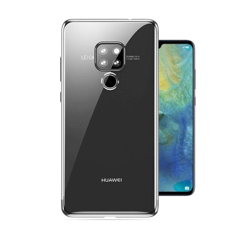 Funda Huawei Mate 20t Gel Transparente con bordes Plateados, con acople perfecto. Perfecta protección gracias a su Doble capa, amortigua mucho en caso de caidas, con diseño extra fino.