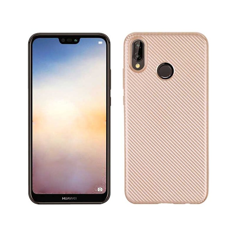 Funda Huawei P20 Lite TPU Fibra Carbono Dorada