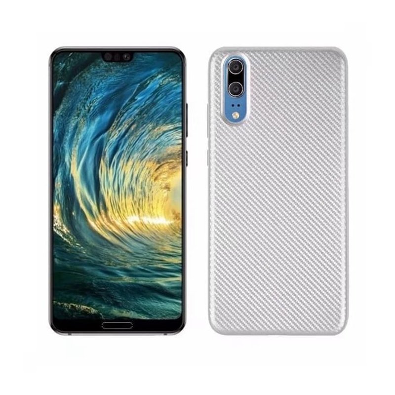 Funda Huawei P20 TPU Fibra Carbono Blanca