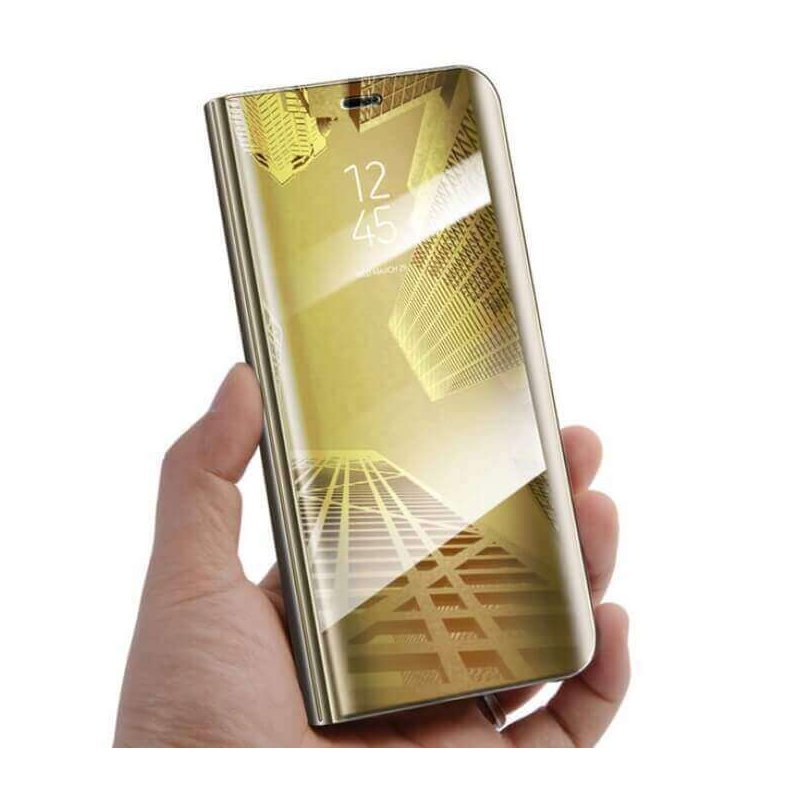 Funda Libro Smart Translucida Huawei P30 Lite Dorada. Con acceso a cables, sistema para camara, sin necesidad de sacar el Smartphone de su funda para usarlo.