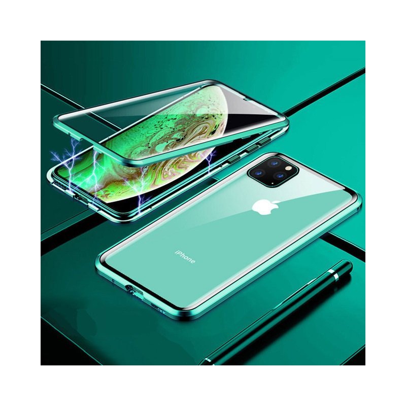 Su Smartphone sera protegido de manera máxima gracias a la carcasa verde con la protección de doble cara a 360º y al recubrimiento con cristal templado tanto en pantalla como en la parte trasera. Sistema de cierre magnético fabricado en aleación de aluminio y vidrio templados a medida del iPhone 13 Pro o Pro Max.