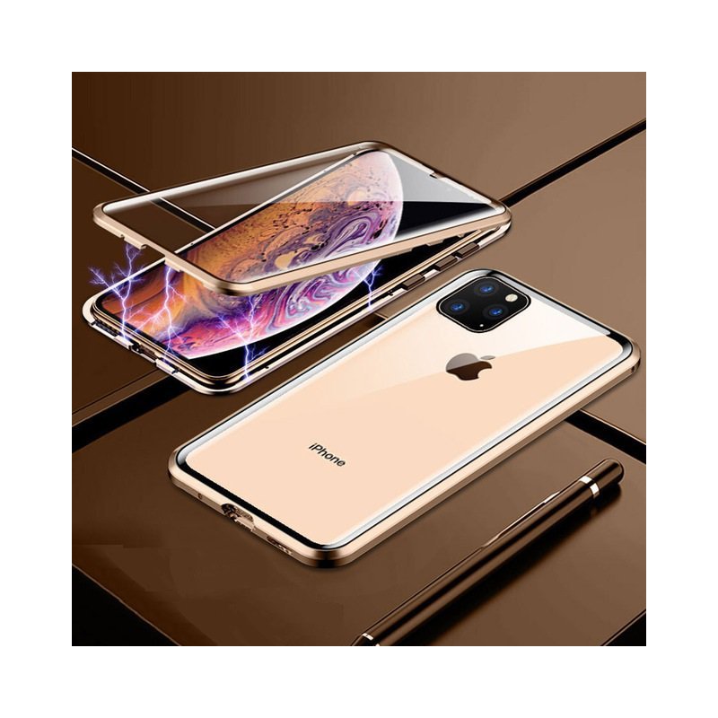 Su Smartphone sera protegido de manera máxima gracias a la carcasa Dorada con la protección de doble cara a 360º y al recubrimiento con cristal templado tanto en pantalla como en la parte trasera. Sistema de cierre magnético fabricado en aleación de aluminio y vidrio templados a medida del iPhone 13 Pro o Pro Max.