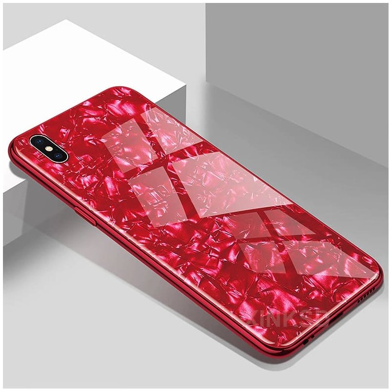 Funda 360 iPhone XS Marmol Templada Roja.