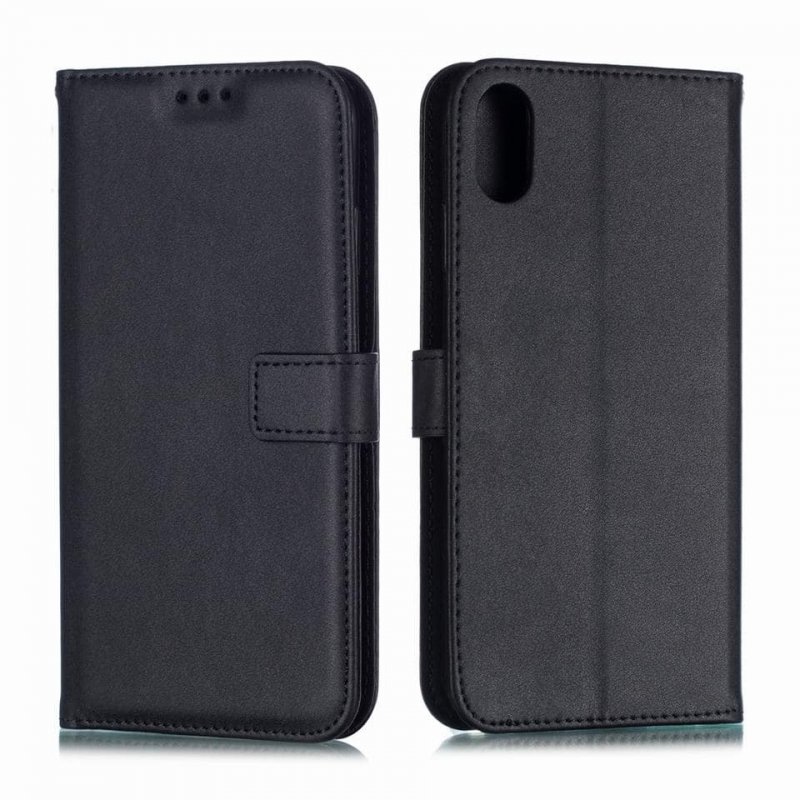 Funda cuero Flip iPhone XS Negra. Con acceso a cables, sistema para camara, pantalla tactíl...sin necesidad de sacar tu iPhone XS de su funda para usarlo.