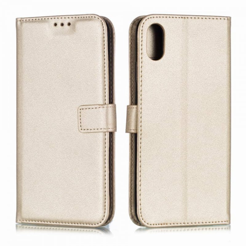 Funda cuero Flip iPhone XS Dorado. Con acceso a cables, sistema para camara, pantalla tactíl...sin necesidad de sacar tu iPhone XS de su funda para usarlo.