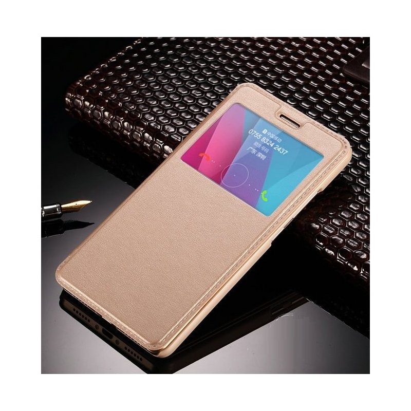 Funda Libro Ventana LG Q6 Dorada. Con acceso a cables, sistema para camara, pantalla tactíl...sin necesidad de sacar el Smartphone de su funda para usarlo.