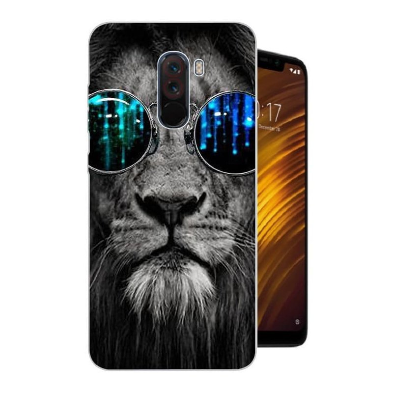 Funda Pocophone F1 Gel Dibujo Leon con Gafas Indestructible de alta calidad.
