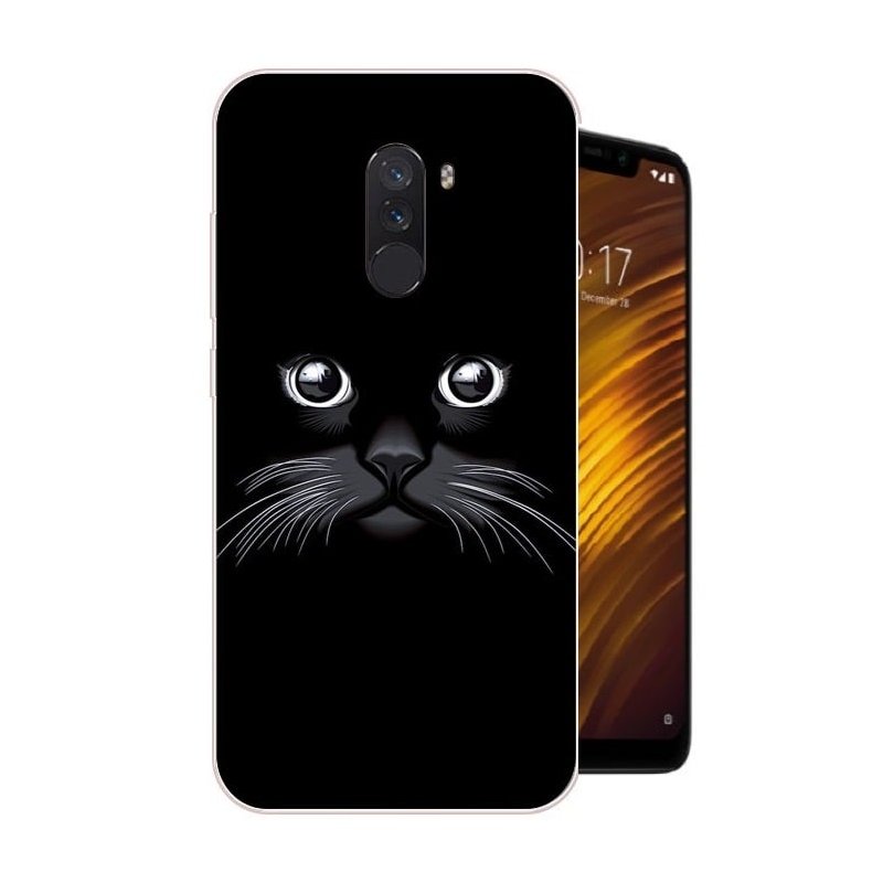 Funda Pocophone F1 Gel Dibujo Gato Negro Indestructible de alta calidad.