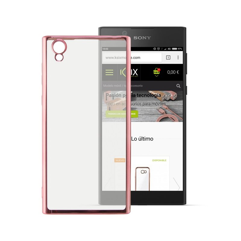 Funda Gel Sony Xperia L1 con bordes Cromados Rosa, con acople perfecto. Perfecta protección gracias a su Doble capa, amortigua mucho en caso de caidas, con diseño extra fino.