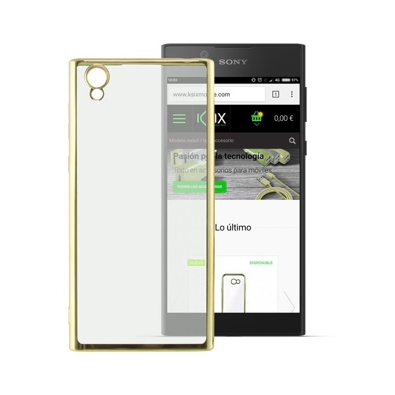 Funda Gel Sony Xperia L1 con bordes Cromados Dorada, con acople perfecto. Perfecta protección gracias a su Doble capa, amortigua mucho en caso de caidas, con diseño extra fino.