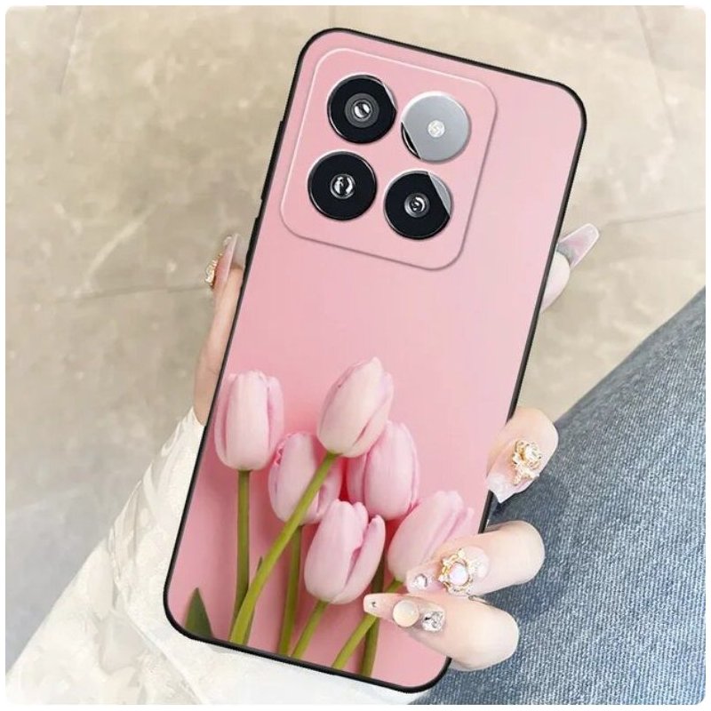 Funda para Xiaomi 14 Tpu Gel silicona flexible Flores, lavable sencillamente al agua bajo el grifo. Es recomendado no utilizar detergente fuerte como lejía, por ejemplo.