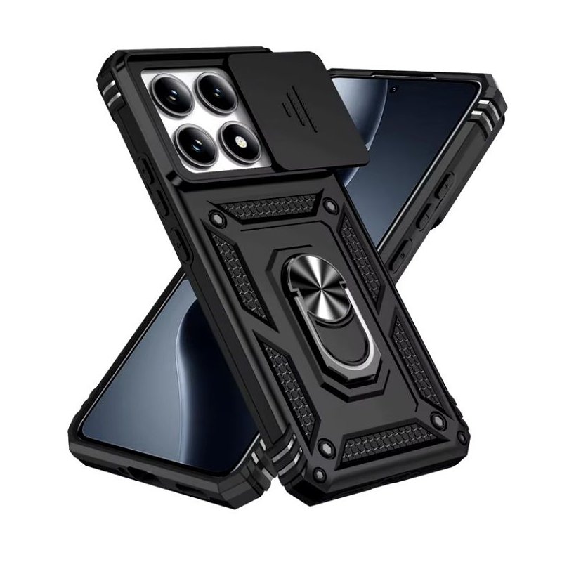 Funda Xiaomi 14T Tank antigolpes Imán Negra. Carcasa Negra con anillo para dedo. Funda magnetica para poder usarse con con soporte auto aimantado.