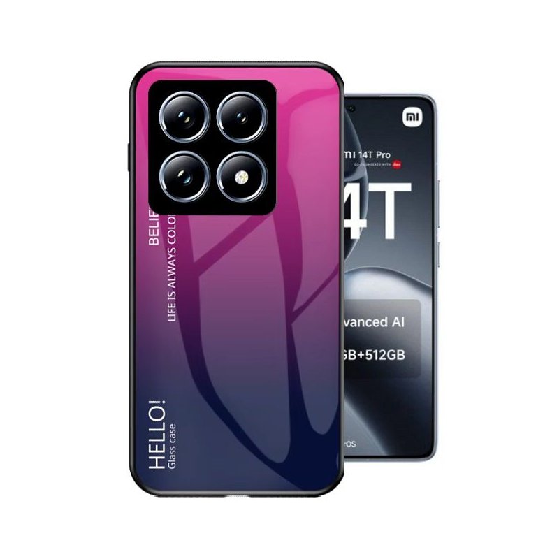 Funda Xiaomi 14T con Trasera de Cristal templado Fucsia. Diseño espectacular disponible en 7 colores.