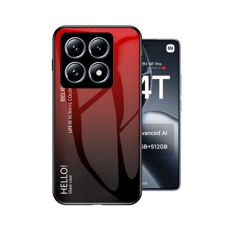 Funda Xiaomi 14T con Trasera de Cristal templado Roja. Diseño espectacular disponible en 7 colores.
