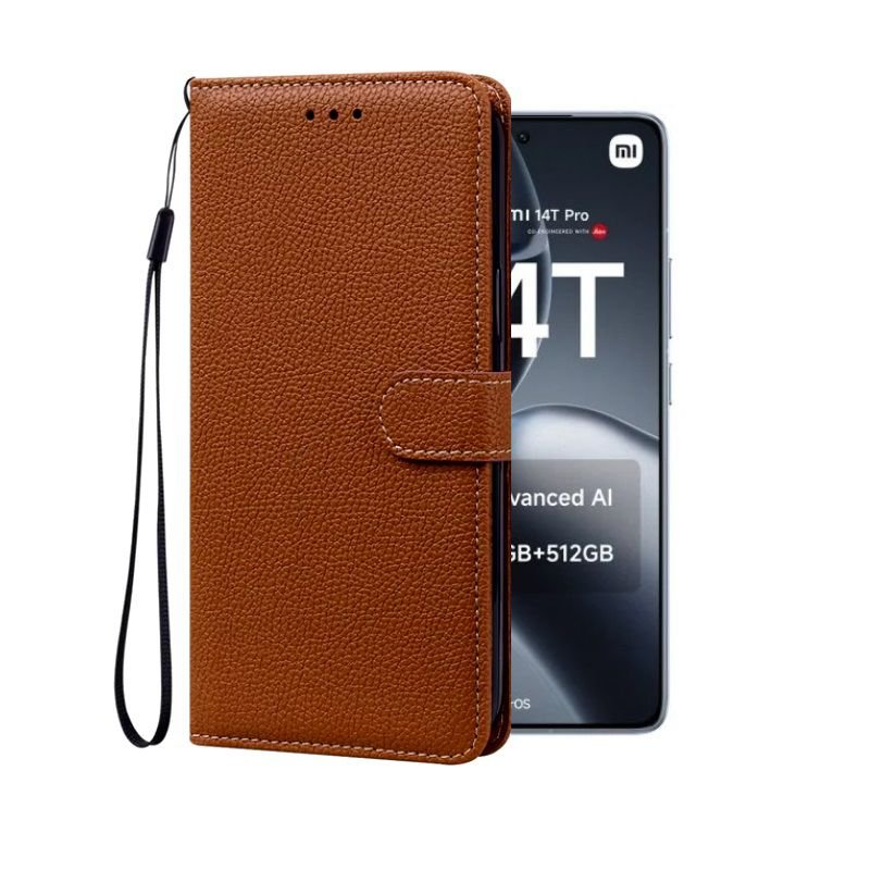 Funda cartera Xiaomi 14T Soporte Video Marron.