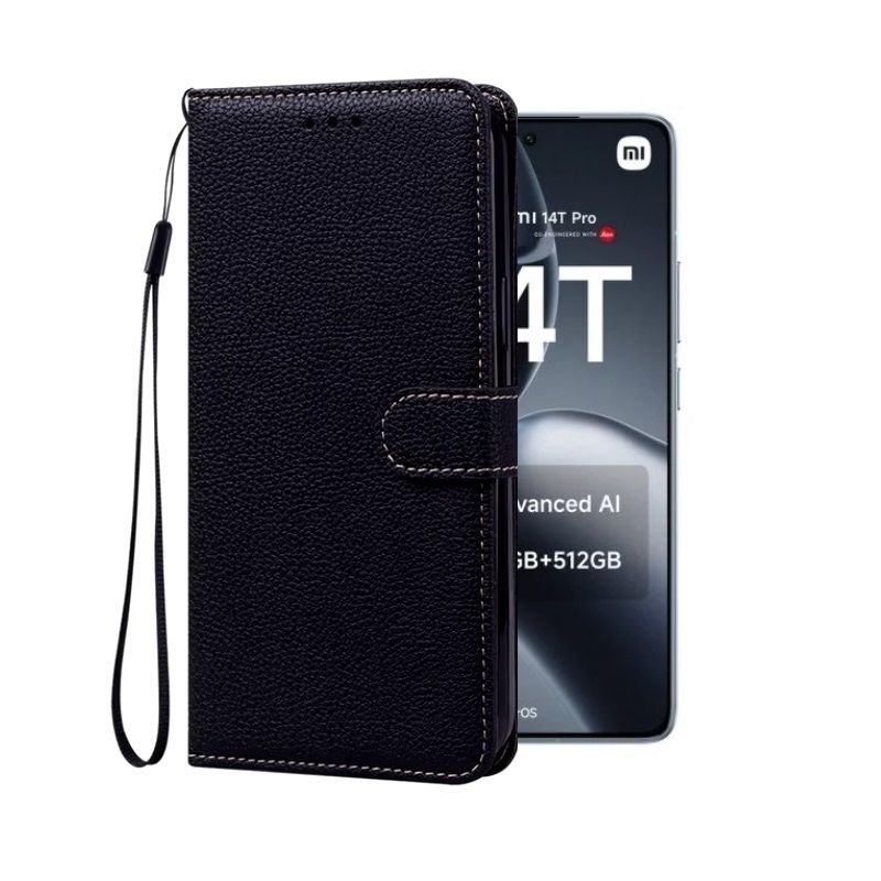 Funda cartera Xiaomi 14T Soporte Video Negro.