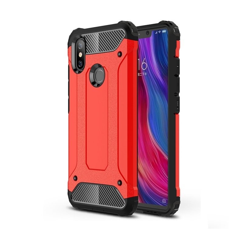 Funda Xiaomi MI 8 Shock Resistante Roja, con acople perfecto. Perfecta protección gracias a su Doble capa (silicona + plastico duro), amortigua mucho en caso de caidas.