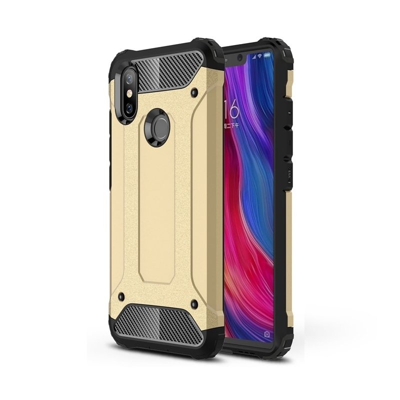 Funda Xiaomi MI 8 Shock Resistante Dorado , con acople perfecto. Perfecta protección gracias a su Doble capa (silicona + plastico duro), amortigua mucho en caso de caidas.