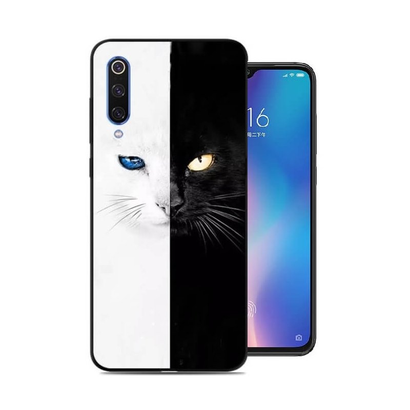 Funda Xiaomi MI 9 SE Gel Dibujo Gato Blanco y Negro Indestructible de alta calidad.