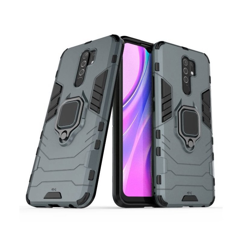 Funda Gris Xiaomi Redmi 9 o 9T Armor magnetica anti golpes. Carcasa con anillo para dedo. Funda imantada para poder usarla con con soporte auto aimantado.