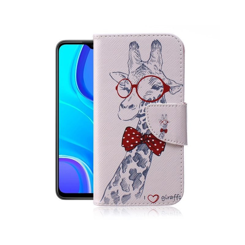 Funda Libro Xiaomi Redmi 9 o 9T dibujo Jirafa cuero Soporte. Gran calidad para esta funda con ranuras especificas para tarjetas de credito.