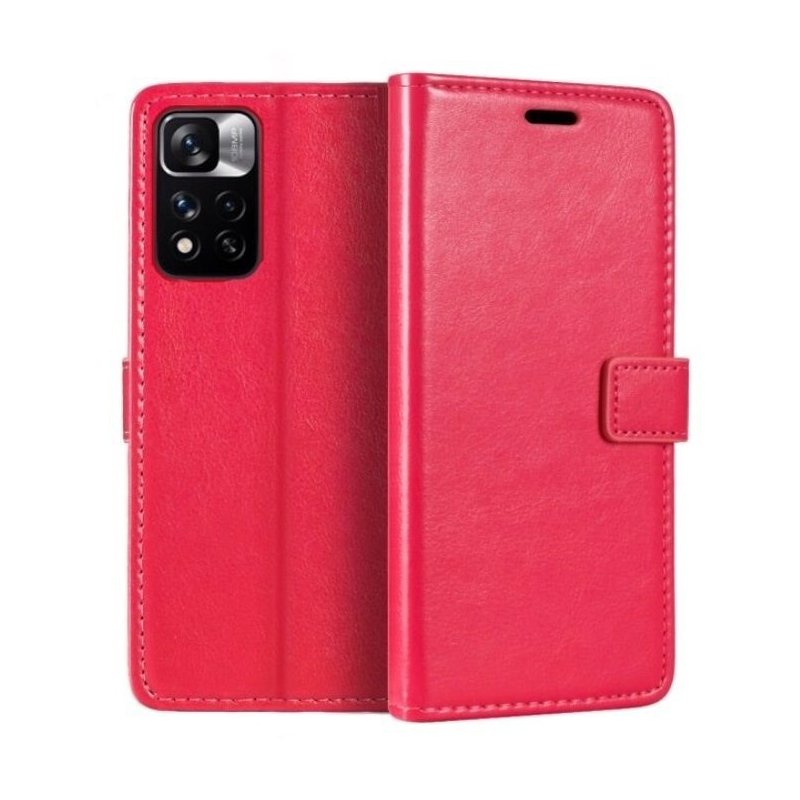 Funda cartera Xiaomi Redmi Note 11 Pro cuero Roja con función Soporte. Con ranuras específicas para tarjetas.