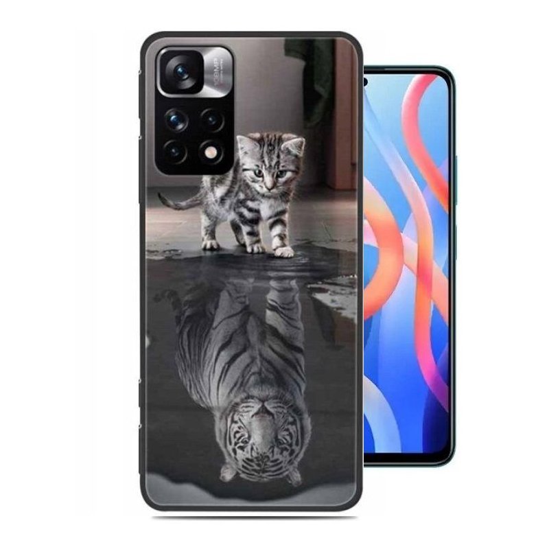 Funda trasera silicona para Redmi Note 11 y 11S Gatito reflejo. Impresión de alta calidad japonesa. Funda flexible y lavable.