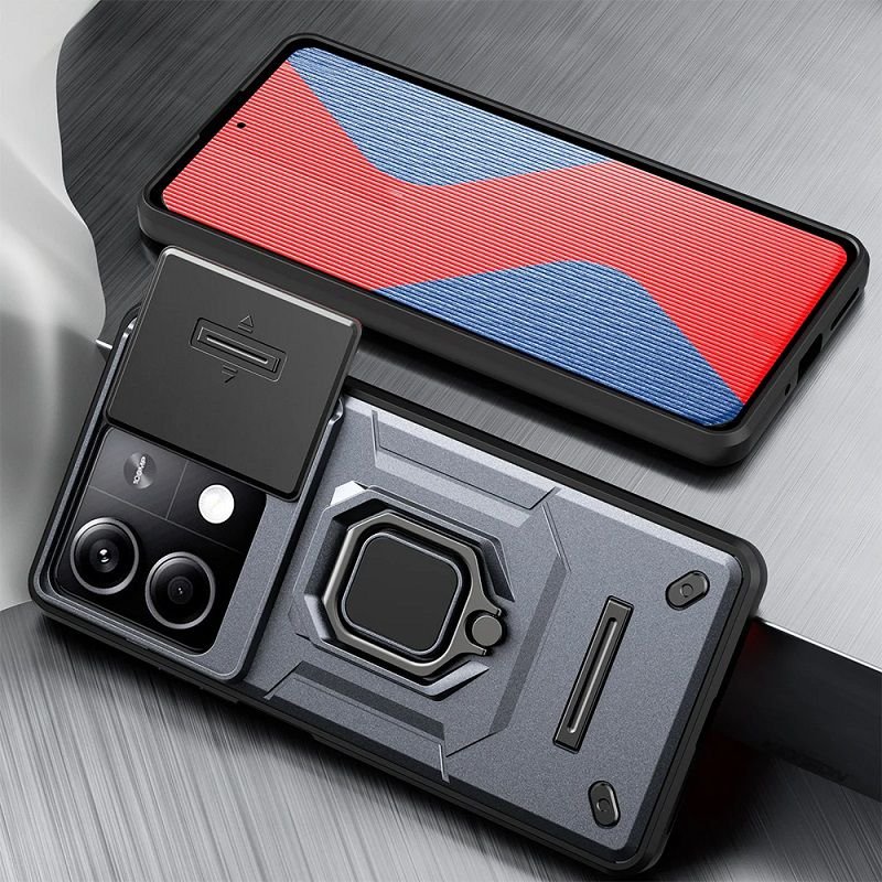 Funda Xiaomi Redmi Note 13 4G o 5G Shock Resistante de color Gris, con acople perfecto. Perfecta protección gracias a su Doble capa (silicona + pc rigido), amortigua mucho en caso de caídas.