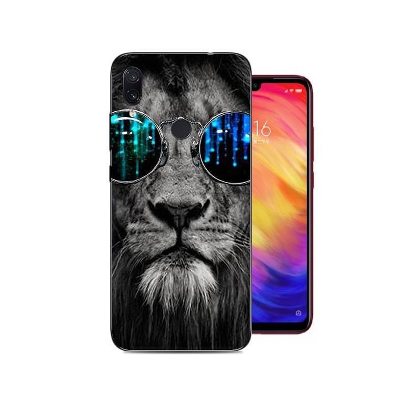 Funda Xiaomi Redmi Note 7 Gel Dibujo Leon con Gafas Indestructible de alta calidad.