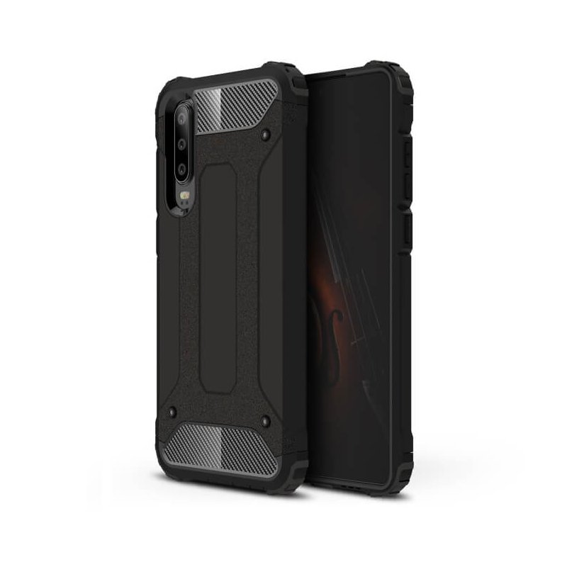 Funda Huawei P30 Shock Resistante Negra, con acople perfecto. Perfecta protección gracias a su Doble capa (silicona + plastico duro), amortigua mucho en caso de caidas.