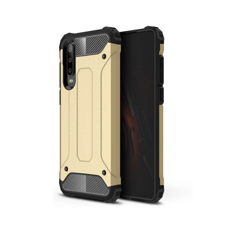 Funda Huawei P30 Shock Resistante Dorada, con acople perfecto. Perfecta protección gracias a su Doble capa (silicona + plastico duro), amortigua mucho en caso de caidas.